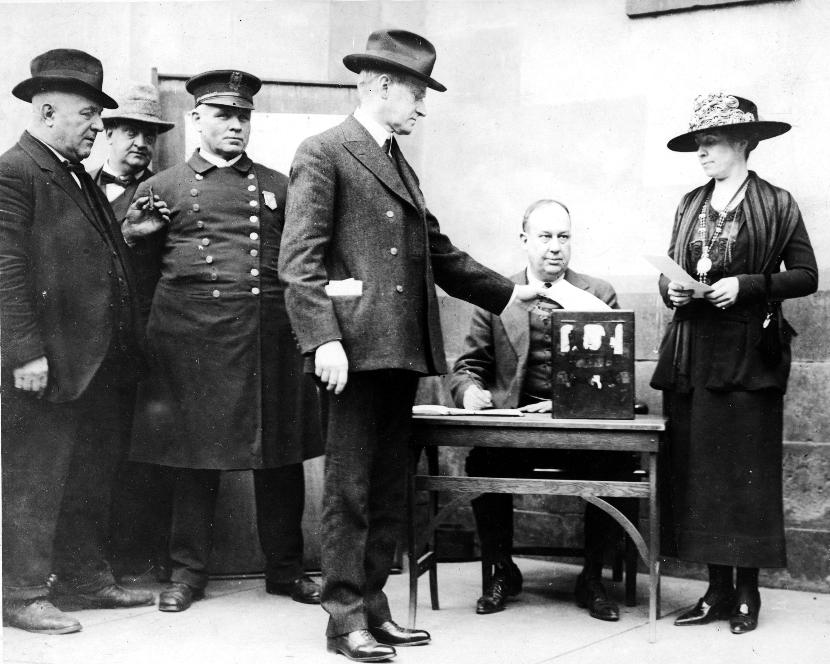 Governor and Mrs. Coolidge cast their own votes in Northampton for the 1920 national election. Photo courtesy Forbes Library & Museum