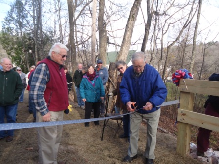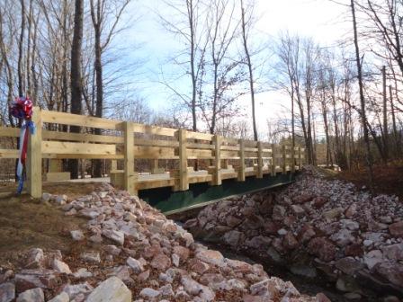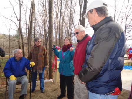 So, it was a pleasant break to have the Library Trail Bridge dedication on Saturday. Thirty or so people enjoyed the brisk, but sunny afternoon celebration. It was nice to see Tyson neighbors & those from the other parts of town as well. The real treat was to have Bill Jarvi there, brought from Rutland by his daughter, Lauren.