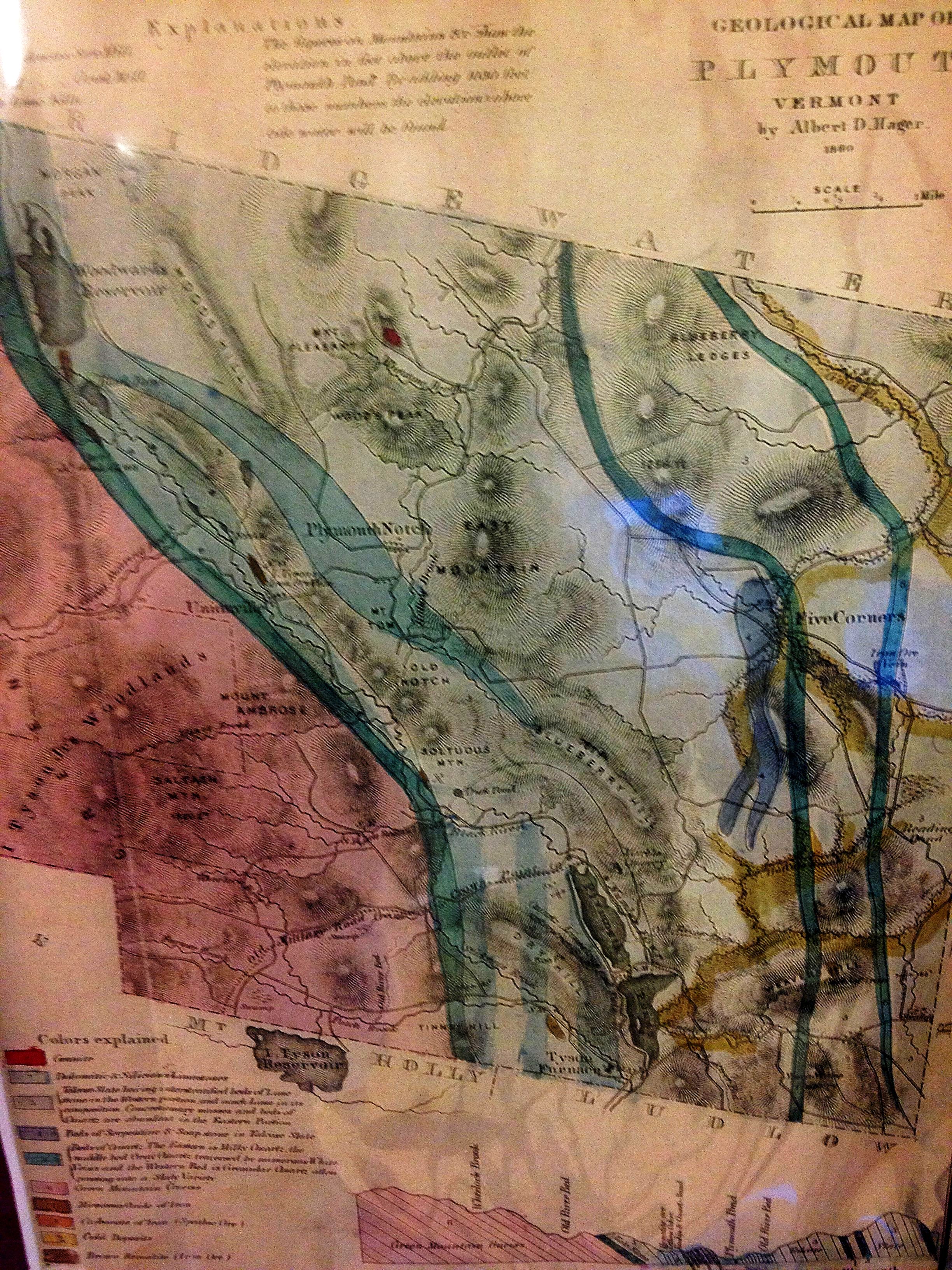 Marjorie Gale, State Geologist and Director of the Vermont Geological Survey, will present a program on the geology of Plymouth. The program is scheduled for August 23, 2015, at 1 PM in the Plymouth Vermont town hall. Marjorie, who has 18 years of experience working as a geologist in the Agency of Natural Resources, will focus on 3 bedrock maps of Vermont (produced in 1861, 1961, and 2011), on the big ideas that developed in geology, and on major changes that coincided with historical events (the Civil War, development of plate tectonics, space program, etc). She will draw on some of our local history as well, to show links between local history and geology.