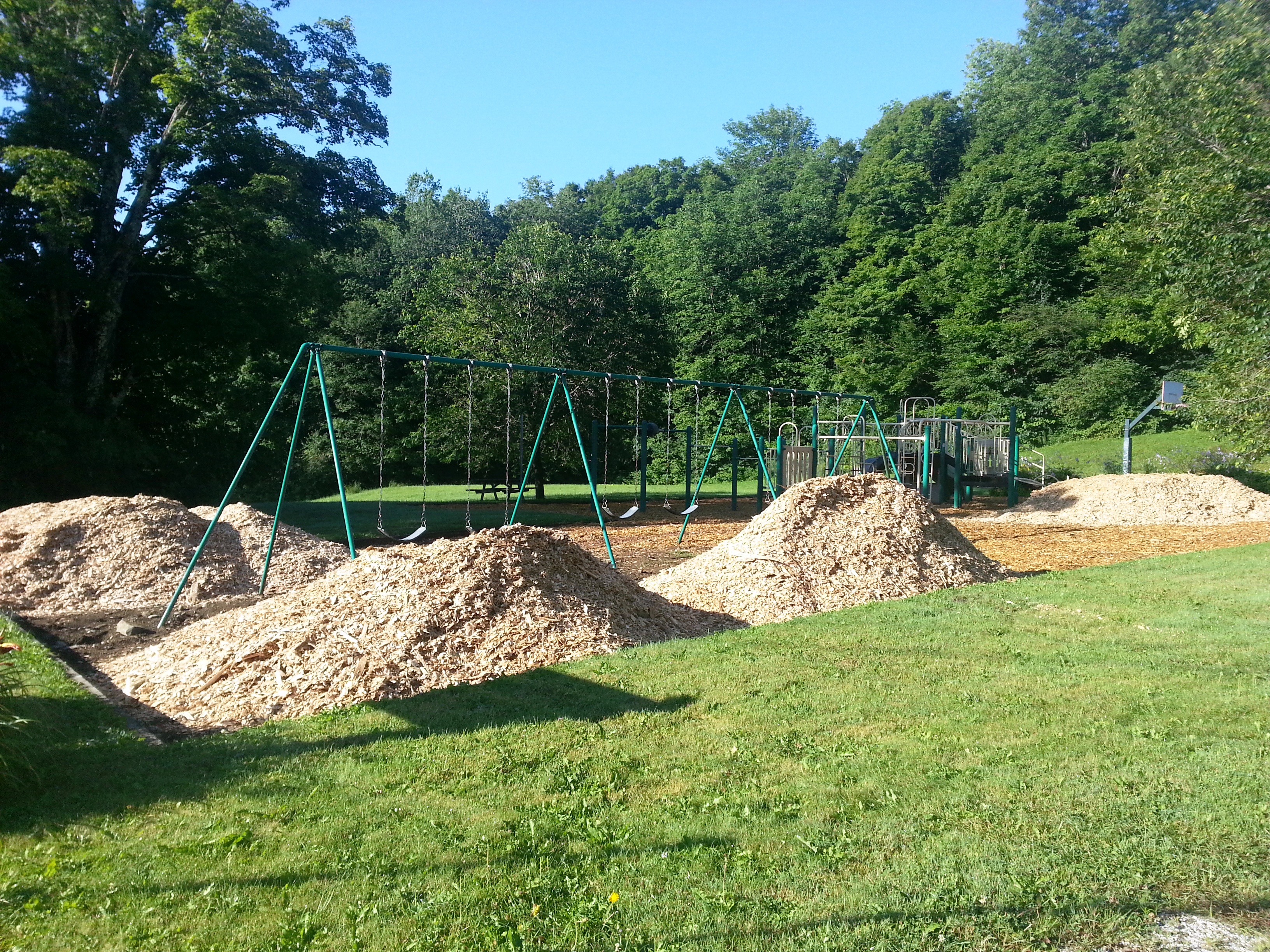 The campers spread mulch around the revived playground after Plymouth Town employee and Selectboard member Larry Lynds and the Plymouth road crew contributed hours to the project, removing old mulch, regrading the playscape, and delivering truckloads of new mulch. Plymouth Selectboard member Russ Tonkin coordinated the project on behalf of the Selectboard. Plymouth Activity Coordinator Terry Bascom, and Schoolhouse Committee member Jen Flaster, who is also the Development Director at Farm and Wilderness Camp, participated in the project’s conception, design, and execution. Altogether, the rehabilitation of the Community Playground represents a great collaboration between Plymouth town government, residents, and local business.