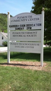 Well, that old adage is true – you can’t be in two places at once and not three either! I understand that the dedication of the Memory Garden and new signs at the Community Center was well-attended. Fond memories of Liza Ward were shared. There are currently 24 bricks in place, but there is room for 94 of them. You can still purchase a brick in memory of a loved one by contacting Midge Tucker at midgetucker@gmail.com or 802-672-3086. The new sign identifies the Plymouth Community Center and also notes the presence of the Plymouth VT Historical Society and the Plymouth Schoolhouse Day Care Center that are also on the premises.