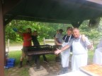 Well, another successful Strawberry Festival. According to Chris at the park, the count was 360, including those who worked at the Festival. I believe that is a few less than last year, but it was still a wonderful cooperative effort and a fabulous gathering. I just love meandering around and visiting with folks I don’t ordinarily see. It was nice to have Sally and Bruce Markwell back in town and they pitched right in. Music by Adam Boyce and Sue Hunt set a nice tone for the evening. Many thanks to all who came over and joined the fun and to those who donated time, effort, items and food!