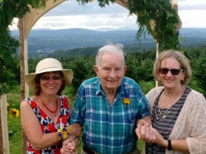 I wanted to share this delightful picture of Bill Jarvi with daughters, Lauren & Kristen that was taken at Lauren’s daughter Hillary Gerardi’s wedding to Bradley Carlson on 8/19 in Barton. So wonderful that he could be there & enjoy this family celebration!