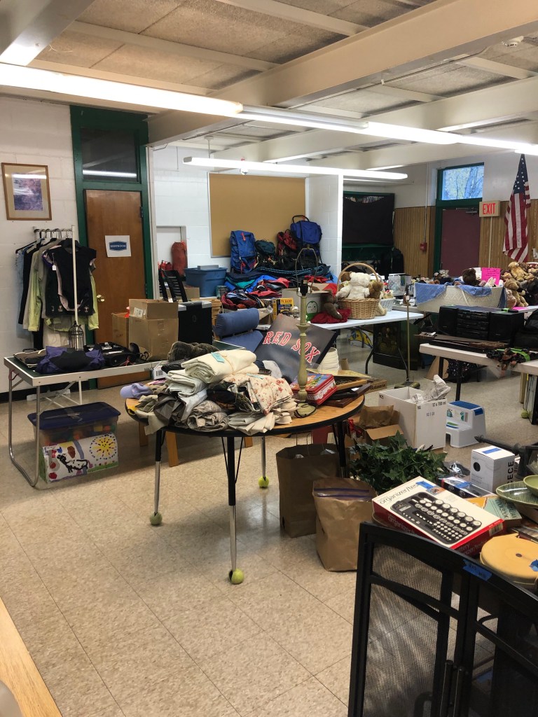 A delightful gentleman with a French accent entered at one point wondering about the designation “Tag Sale”. He and his wife are apparently new in town and were unfamiliar with the term. We warmly ushered him in and all enjoyed a chuckle. The camaraderie was amazing and it felt reasonably Covid-safe with everyone wearing masks and windows and doors open. Lauren did a fantastic job organizing the event!