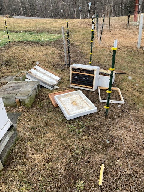 I am wondering if the bears are disgruntled about this wintry weather. They were out in force this weekend, with several people reporting bird feeders being mangled and suet feeders missing all-together! They even set their sights on beehives as they are emerging from hibernation.
