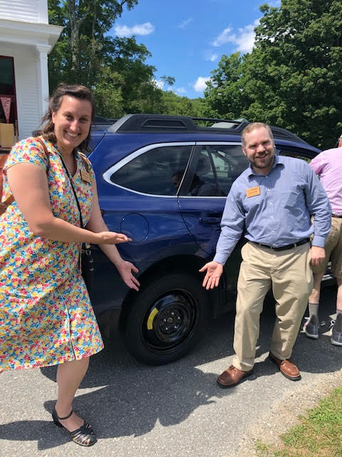 I want to relay the story of a good deed performed by John Farrell, the Office Administrator for the Calvin Coolidge Presidential Foundation and Rejoice Scherry, Site Administrator for the State Historic Site. Carolyn Dashef shared the tale of how they came to her rescue when she was in need of help in front of the Post Office. Initially assisting with a call for roadside assistance that would have taken 2 hours for help to arrive, John jumped right in and changed the flat tire with assistance from Rejoice. The smiles on their faces show their cheerful willingness to be of service. That sounds like a good deed Calvin Coolidge would applaud!