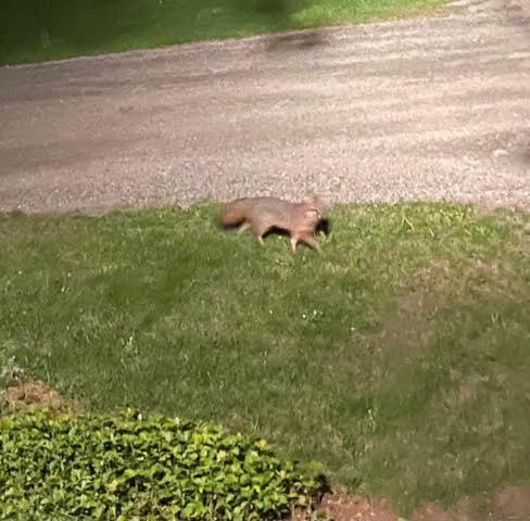 Something has been setting off my driveway alarm around 9 PM each night. I was finally able to see that it is a fox, who looks nice and healthy with a beautiful fluffy tail.