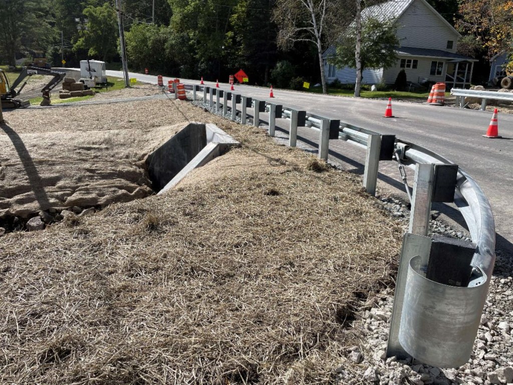 CONSTRUCTION ACTIVITIES: This week, the contractor, Belden Construction, installed guardrail, placed driveway gravel, and placed seeds and mulch on slopes. Clean-up and restoration of staging areas and demobilization of equipment also occurred towards the end of the week. Next week, wearing course paving will take place, followed by centerline and edge line painting (weather permitting). Tree and shrub planting by the culvert outlet will also be planted next week. This will complete the project.