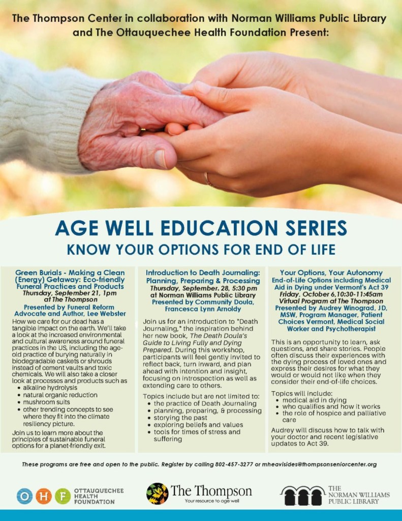 These programs are free and open to the public. Register by calling the Thompson Senior Center at 802-457-3277 or mheavisides@thompsonseniorcenter.org