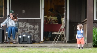A young admirer of the fiddle music of Adam Boyce and pianist Sue Hunt at 2019 Strawberry Festival in Plymouth VT (MABoyce)